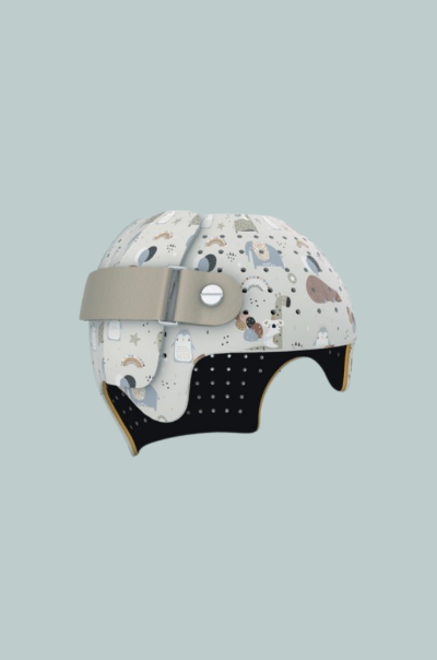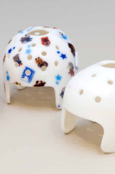 赤ちゃんの頭の形の矯正に使用するヘルメットは沢山あります。デザインや重さ、皮膚との相性なども重要ですが、当院では、それぞれのお子様の頭蓋変形の状態や、生活環境にあったものを選べるよう複数の種類のヘルメットを取り扱っています。