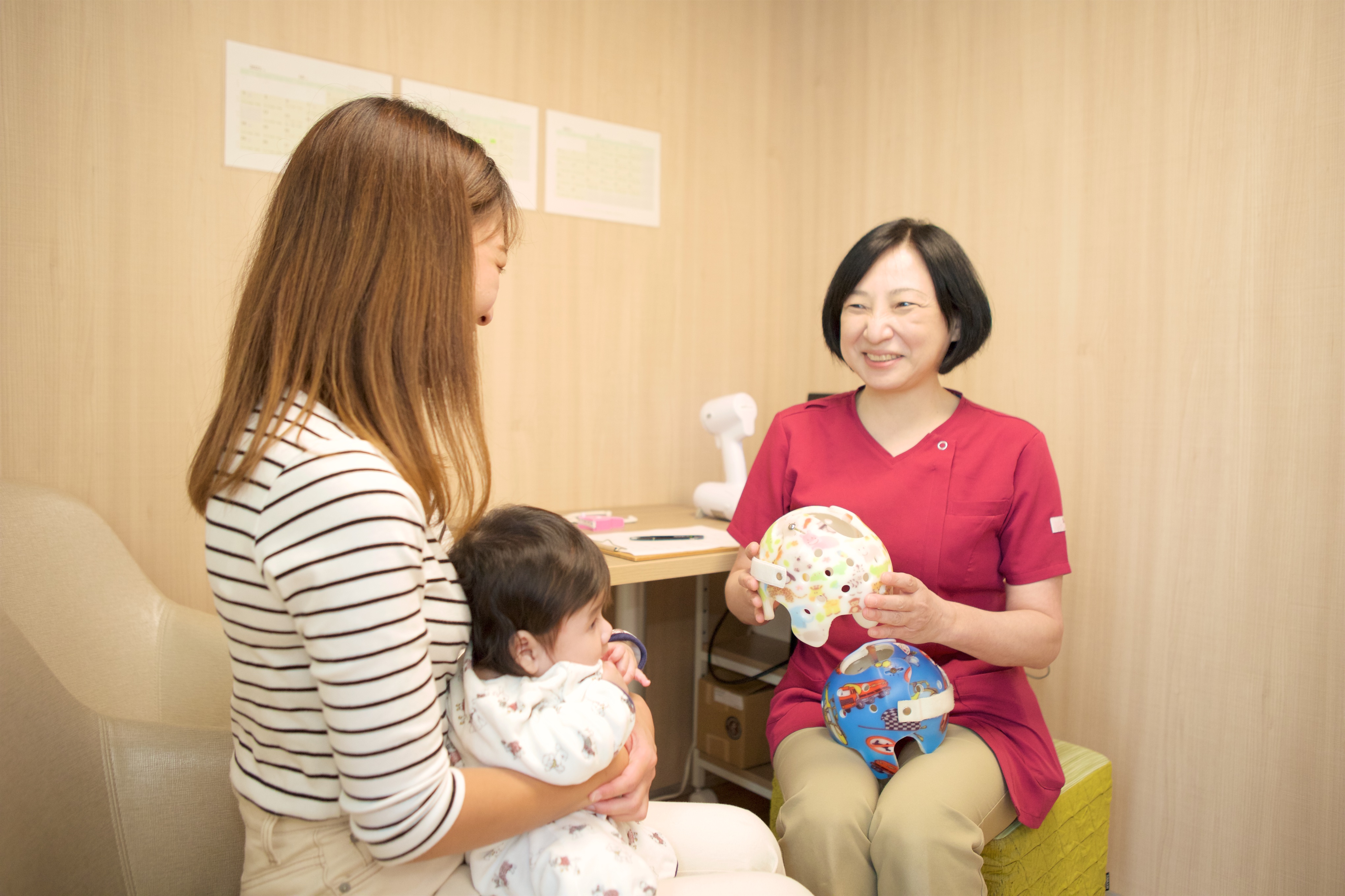 まずは専門医に相談し、赤ちゃんに見合った適切な治療方法を相談できるよう、当院では執拗なヘルメット治療の勧誘を行わないようにしています。