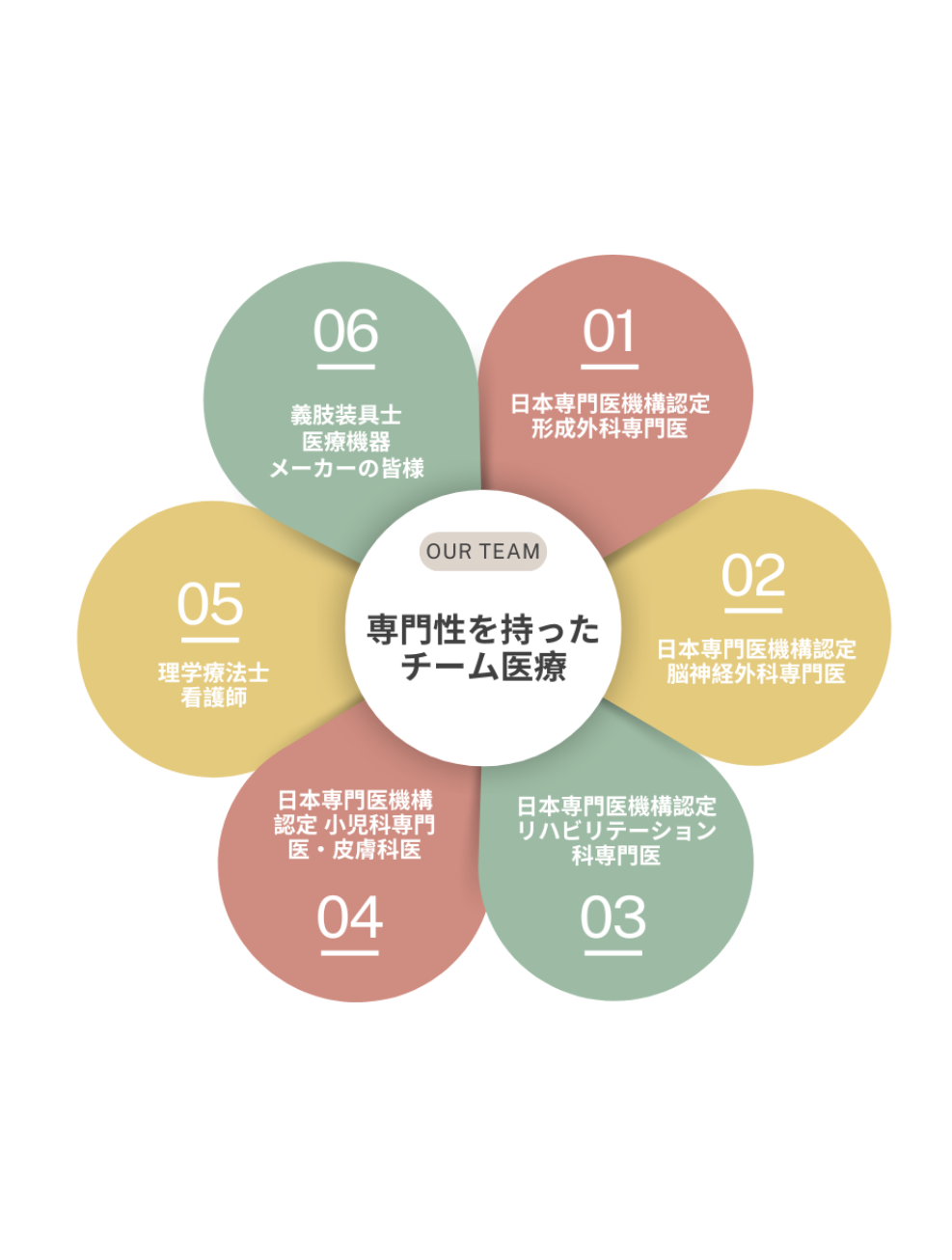 だからこそ、当院では医師、看護師、理学療法士、義肢装具士、医療機器メーカーの皆様、そしてクリニックスタッフが連携してお子様に向き合います。
